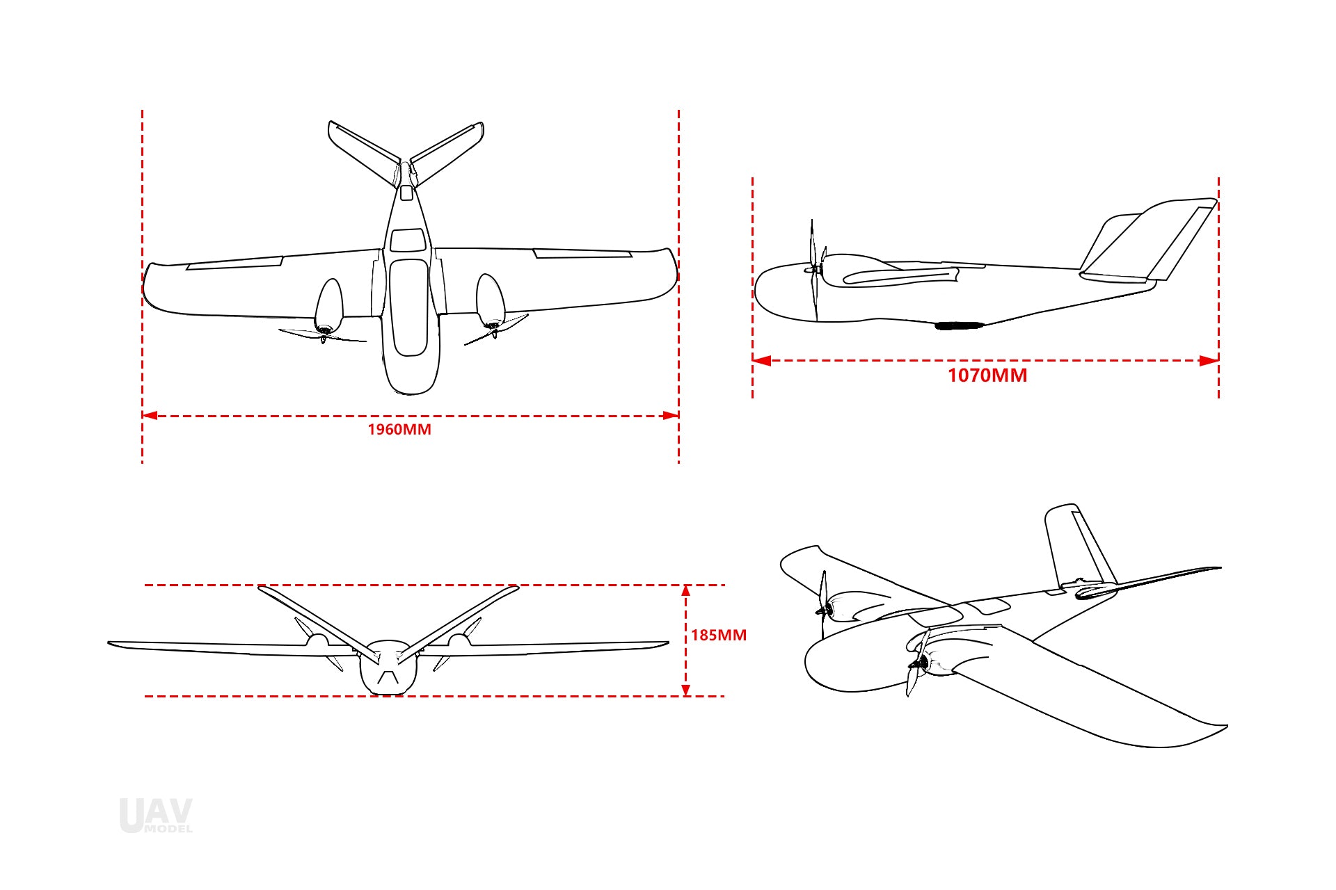 - طول جسم الطائرة: 1070 ملم
