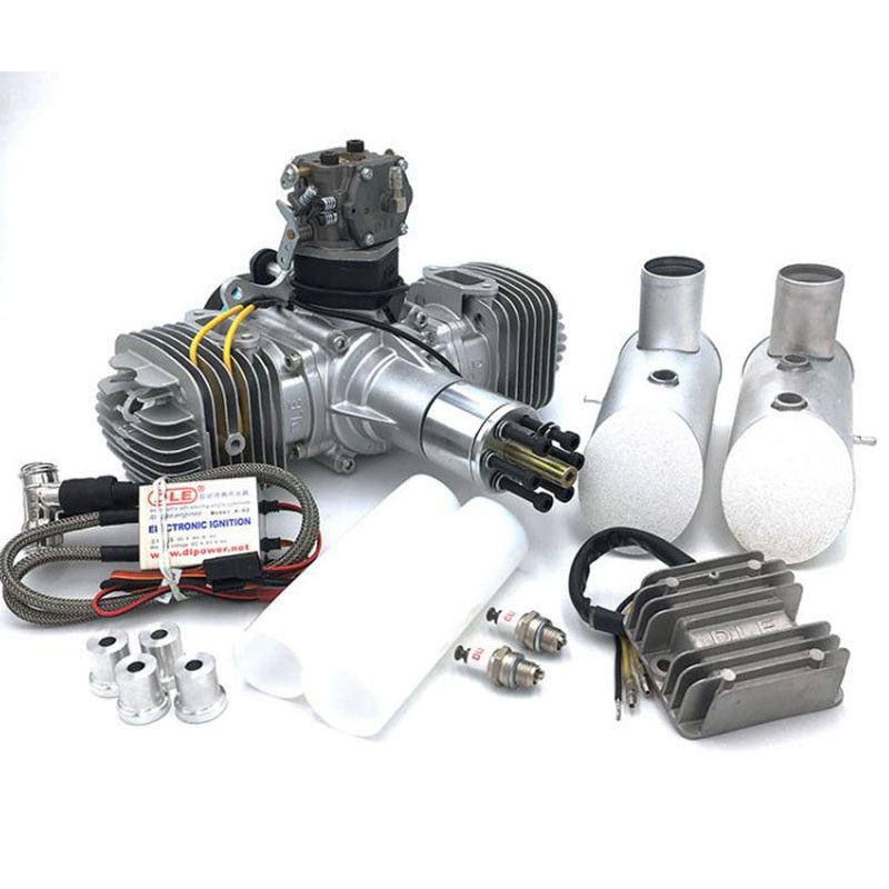 Two-cylinder 120CC two-stroke gasoline engine kit for RC airplane with ignition system and exhaust components Two-cylinder 120CC two-stroke gasoline engine kit for RC airplane with ignition system and exhaust components