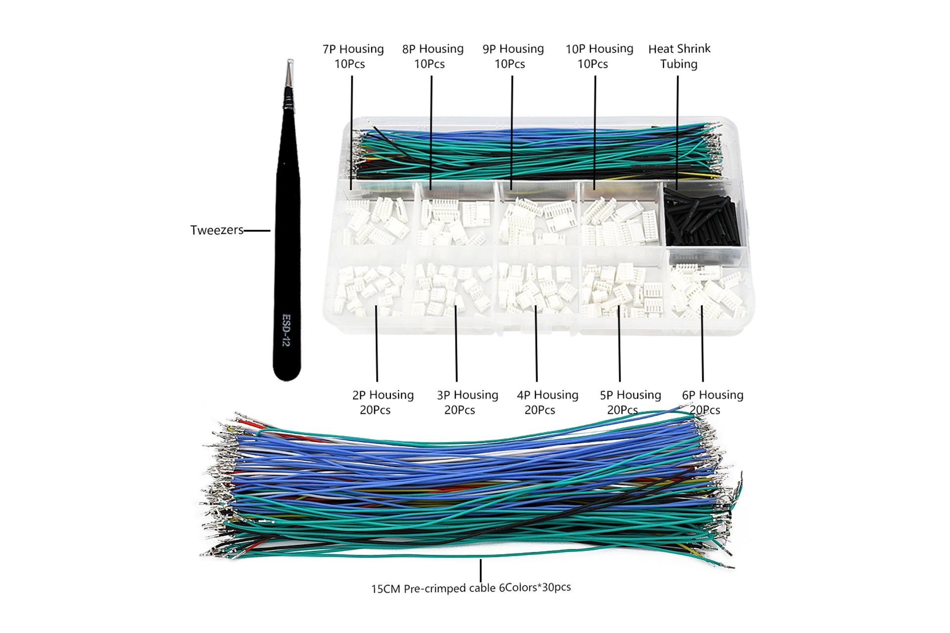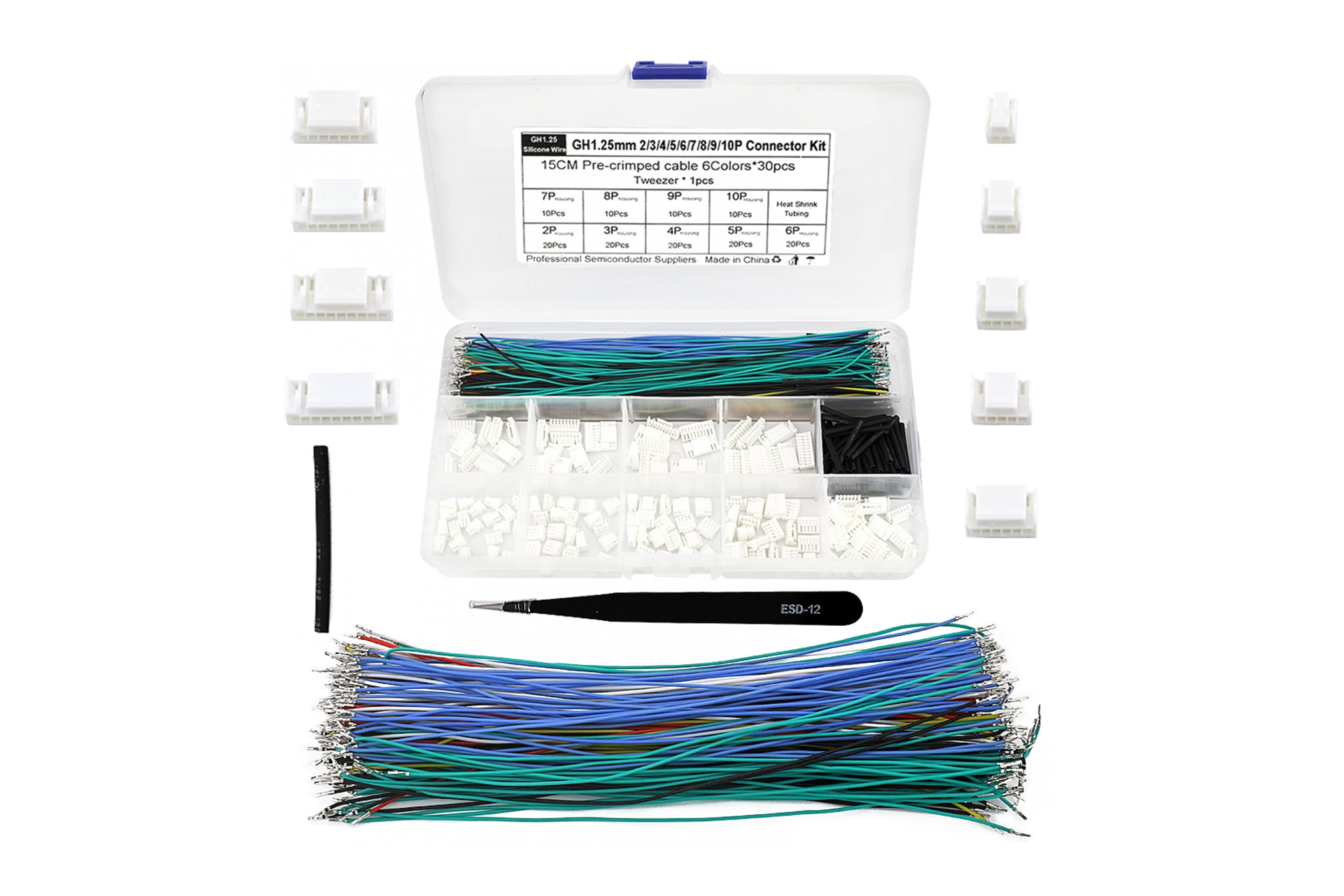 GH1.25MM plastic shell plug terminal block connector kit with pre-crimped cables and tweezers in a compartment box GH1.25MM plastic shell plug terminal block connector kit with pre-crimped cables and tweezers in a compartment box